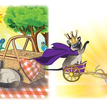 Using my personal vector art style, I designed bold and vibrant illustrations that enrich the playful narrative. A key challenge in this project was ensuring Bimbo’s personality shined through - capturing his regal fantasies while maintaining the story’s lighthearted, endearing tone.