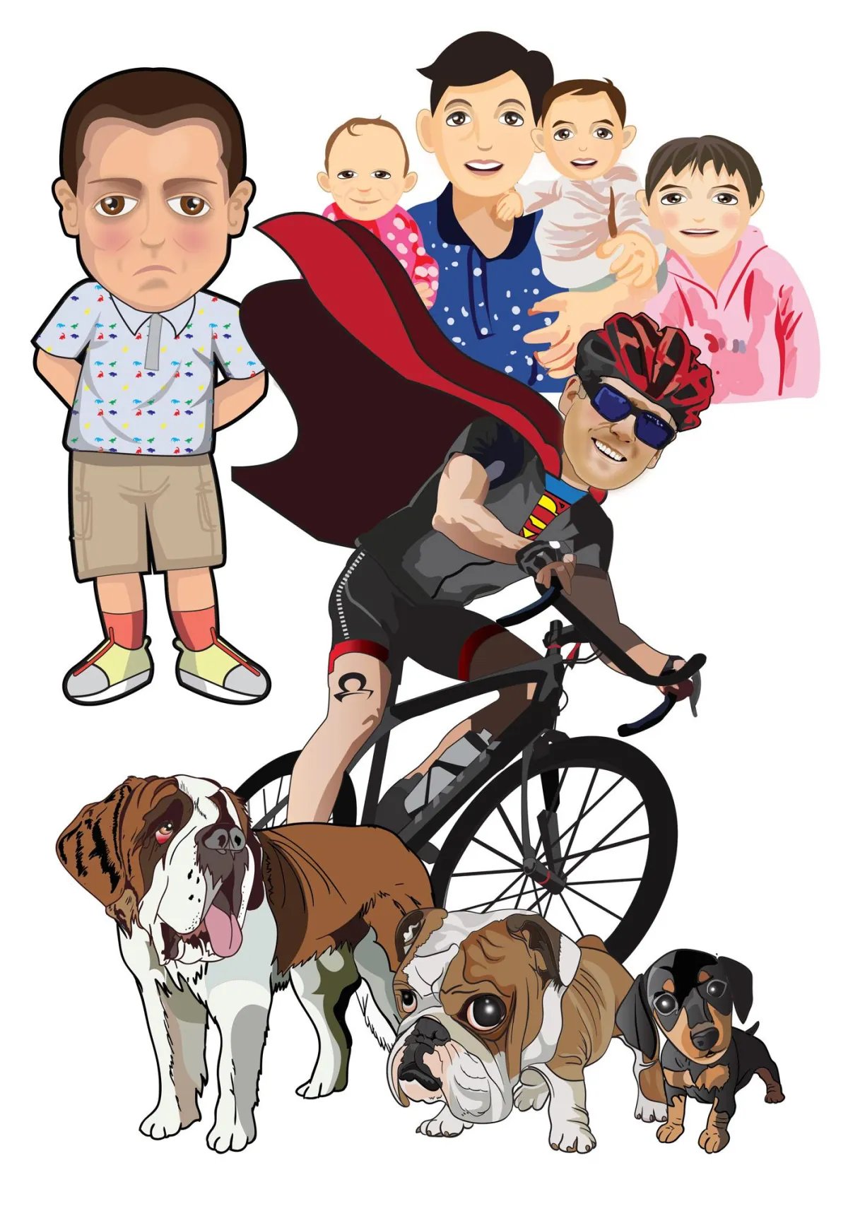 A collection of bold, personality-packed vector cartoons, each commissioned to bring people and their beloved dogs to life in a fresh and unique style! Through exaggerated features, dynamic expressions, and vibrant colours, I crafted illustrations that highlight the joy, quirks, and unmistakable individuality of both the subjects and their furry companions.