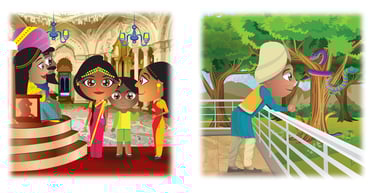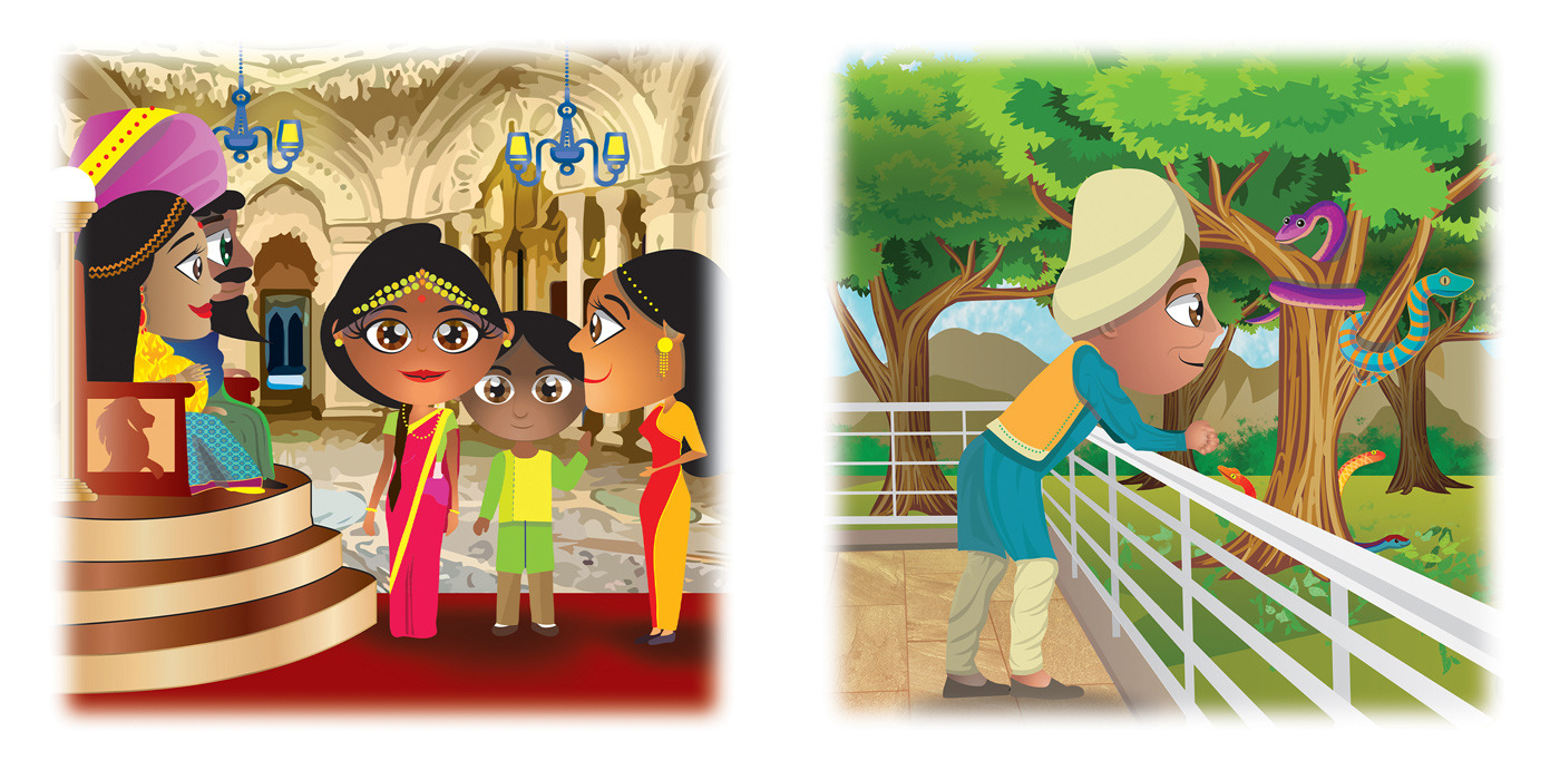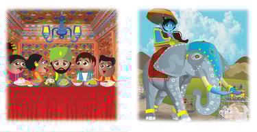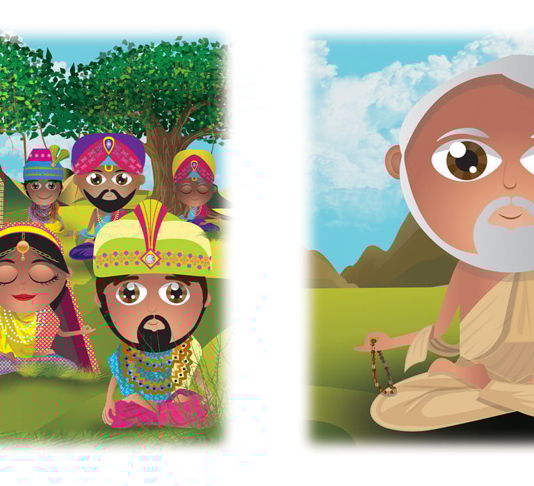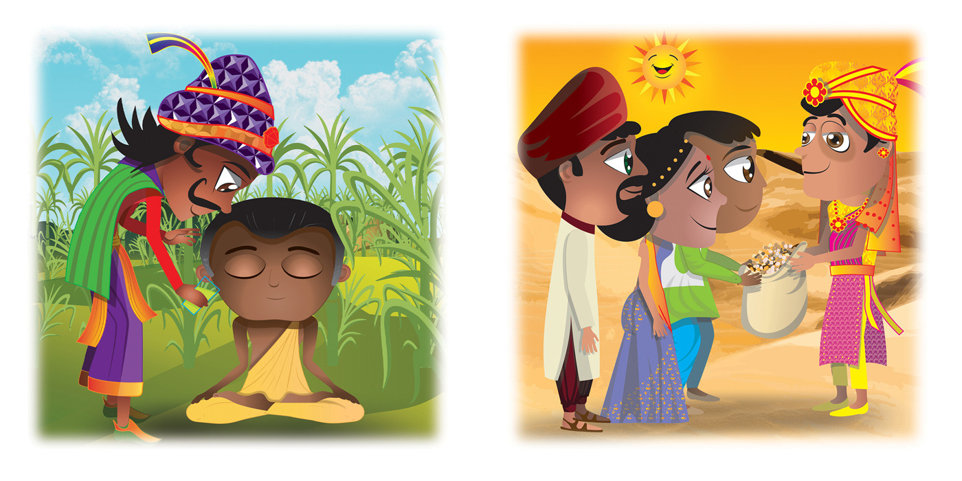 Using my personal vector art style, I infused the book with bright and striking colours, carefully considering Hindu cultural influences to create a visually rich and meaningful representation of Jainism. Every background, character, and composition was meticulously crafted to balance authenticity with an engaging storytelling approach.